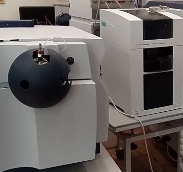 Among other ionization techniques, we offer electrospray ionization (ESI), atmospheric pressure chemical ionization (APCI), and atmospheric pressure photoionization (APPI) for polar less volatile substances. These methods provide both positive and negative ions. We will measure your spectra on an amaZon SL mass spectrometer (installation 2018) or Esquire 3000 from Bruker with an ion trap that allows you to measure up to MS11 in the range of 50 to 6000 Da for singly charged ions. This mass spectrometer is connected online to an HP 1100 HPLC system, allowing separation by gradient elution in both normal and reverse phases using a DAD detector.